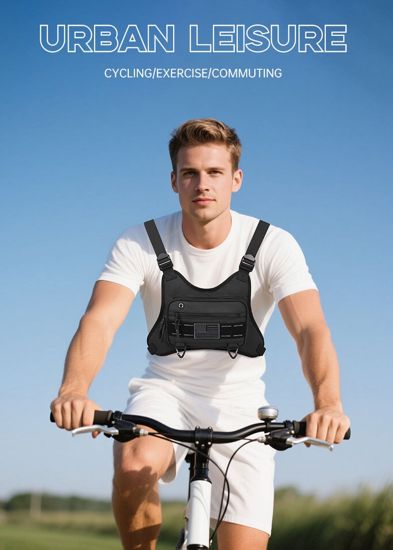 This chest bag mostly used for sports, hiking, travelling, working, motorcyclingโฆ wearing this in public and everything is in front of you so no pick pockets. By the way, if you need to hold all your stuff and being hands free. This is ready for your adventures.
